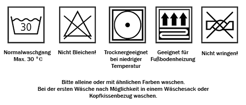 Maschinenwäsche bis maximal 30°C. Pflegeleicht.